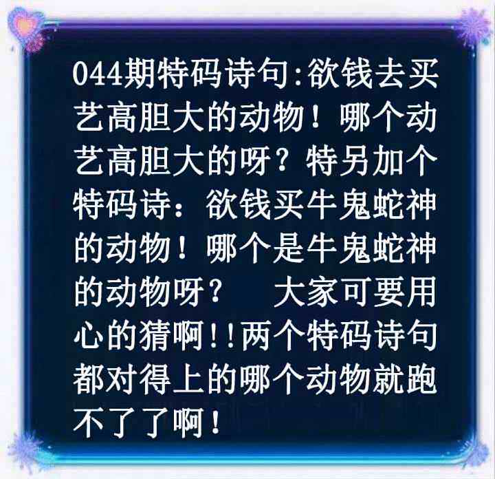 043期:妖魔买特码/彩霸77玄机字/手机短信王/爆一爆/传密一肖诗